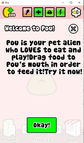My goal's to entirely finish up to the last minigame that was added into Pou.